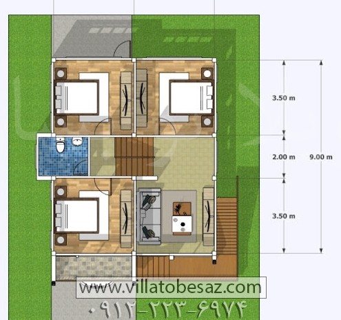 - – اتاق خواب ۲ با اندازه ۳.۷۵ متر در ۳.۵ متر