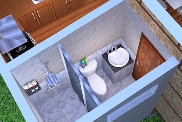 حمام بین دوش و قسمت خشک جدا است. از درب کشویی در مواد شفاف برای لهجه جادار استفاده کنید. سپس، مثل همیشه یک چیدمان خوب برای یک حمام دنج داشته باشید.
