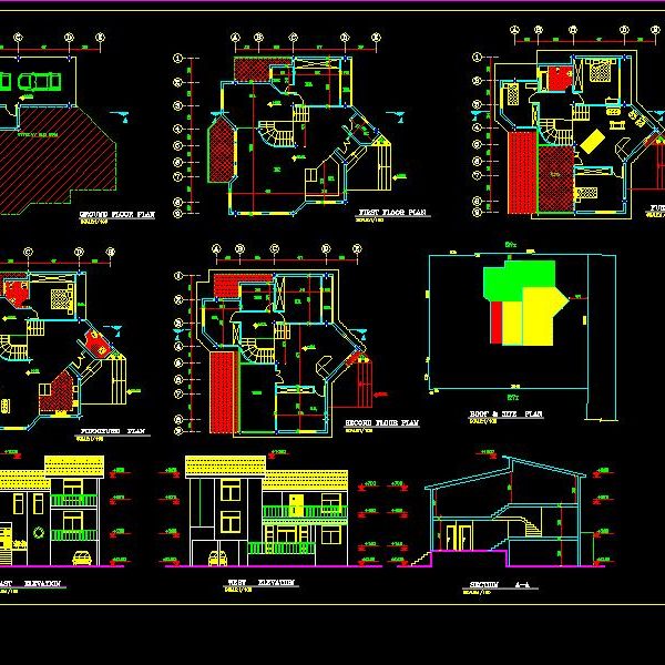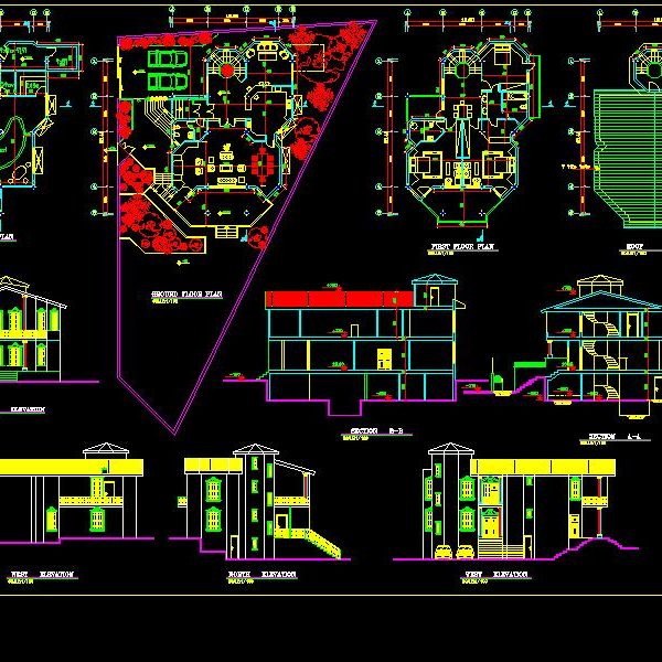 دانلود نقشه ویلا تریبلکس ۳ خوابه با محوطه سازی