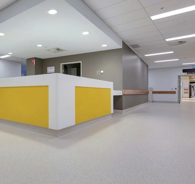 تردد مداوم تخت، ویلچر، تجهیزات پزشکی و افراد، نیازمند کفپوشی با مقاومت بالا در برابر سایش است.